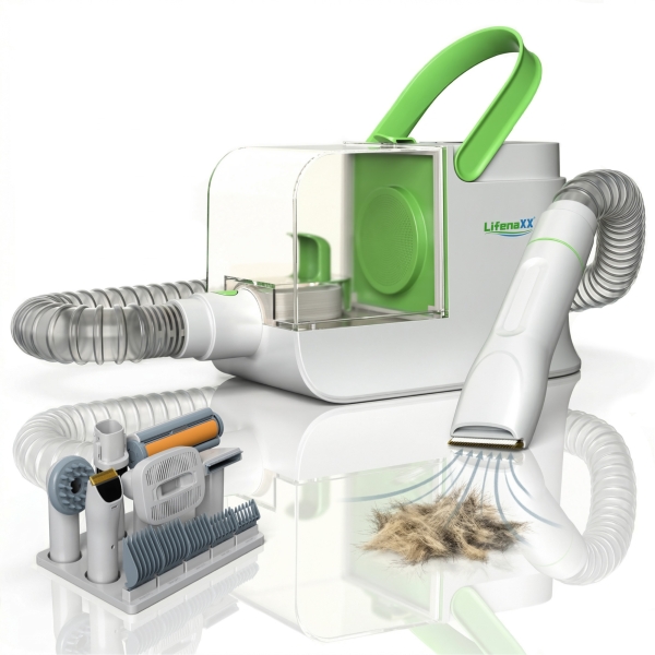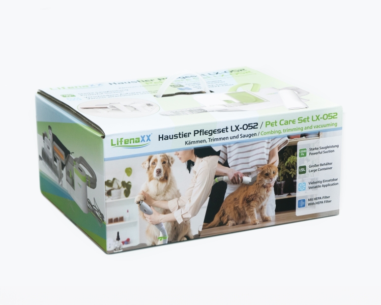 Package contents: - Vacuum unit, flexible hose, grooming brush, clipper, deshedding brush,massage brush, 2-in-1 flat brush, roller brush, 6 clipper guide combs, cleaning brush, lubricant, accessories holder, accessories bag, user manual